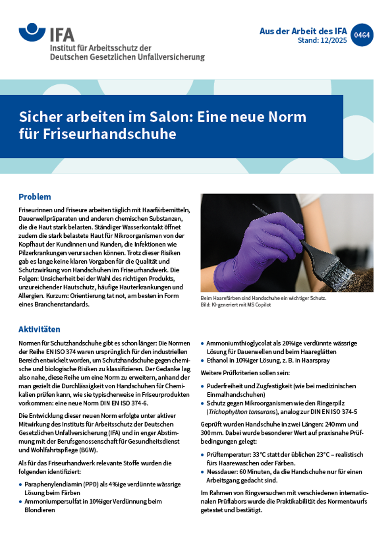| Hinweis: Das Institut für Arbeit und Gesundheit der DGUV (IAG) heißt seit dem 01.01.2026 DGUV Akademie. Die bis Ende 2025 erschienenen Blätter werden nicht umbenannt, sondern berichten weiterhin "Aus der Arbeit des IAG". |